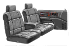 Optional leather 55/45 seating surface with front and rear center armrests, adjustable head restraints, driver and front-passenger- seat recliners, and seat-back storage pockets (not available on Wagon, which has Custom Cloth standard) .